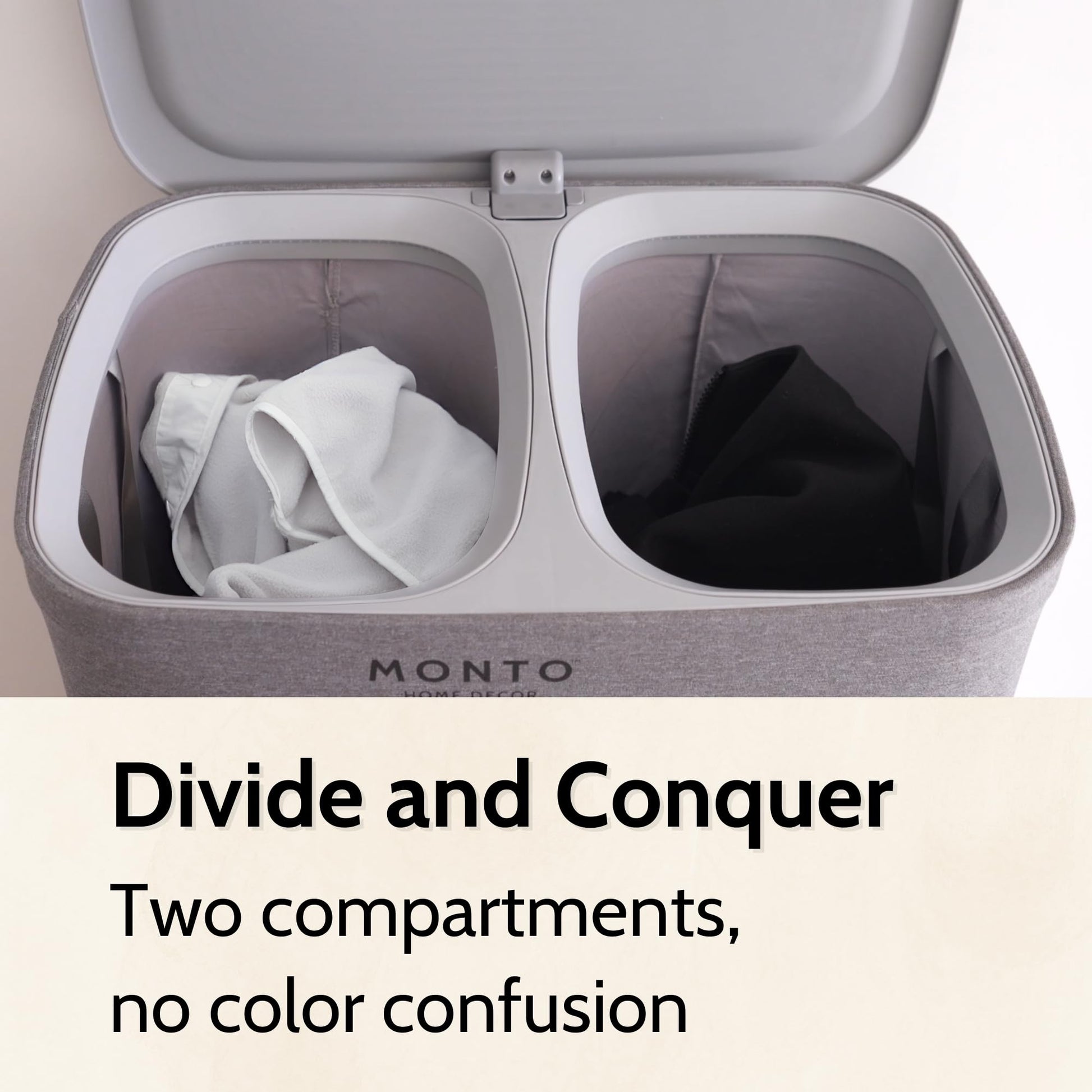 - No More Messy Laundry Piles Tired of dealing with the chaos of clothes everywhere? With our laundry basket featuring dual compartments, organizing light and dark fabrics becomes a breeze. Enjoy a more organized home and a smoother laundry routine every day.