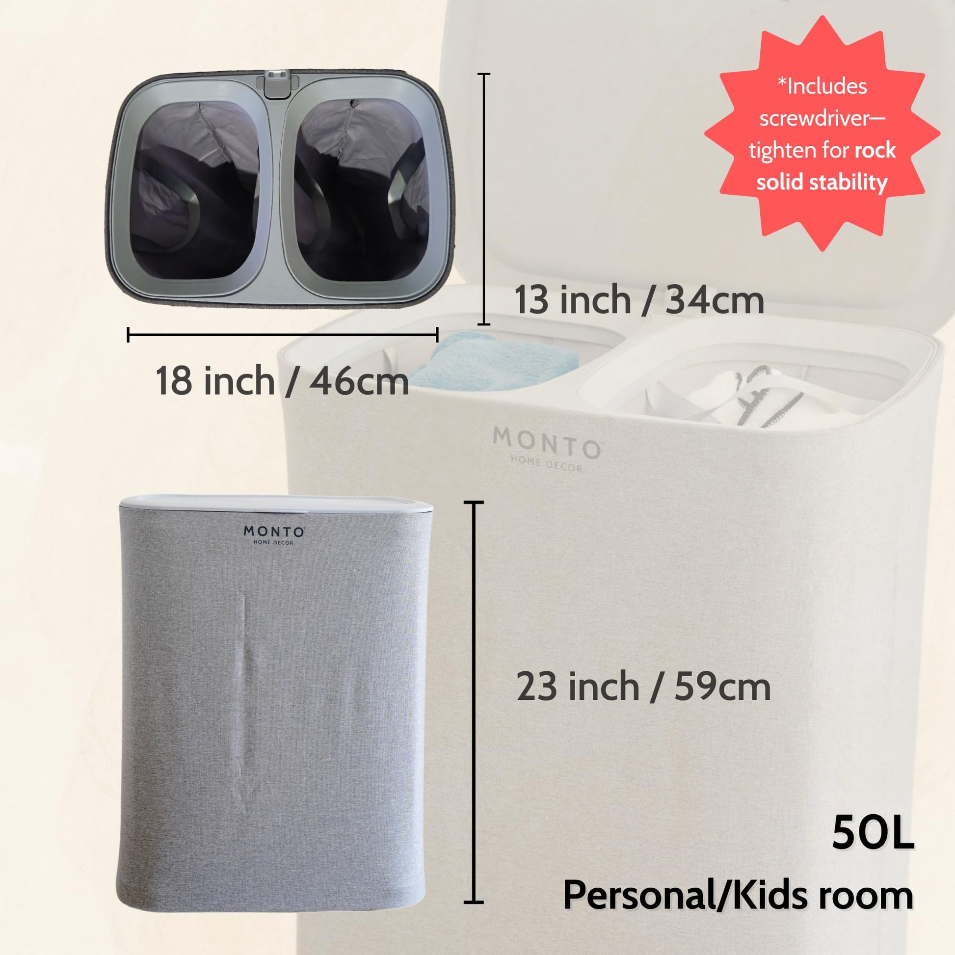 - Experience Calm with a Space-Saving Design Wave goodbye to clutter with this dual laundry hamper. Its compact design fits perfectly into tight spaces, helping you create a serene, organized home.